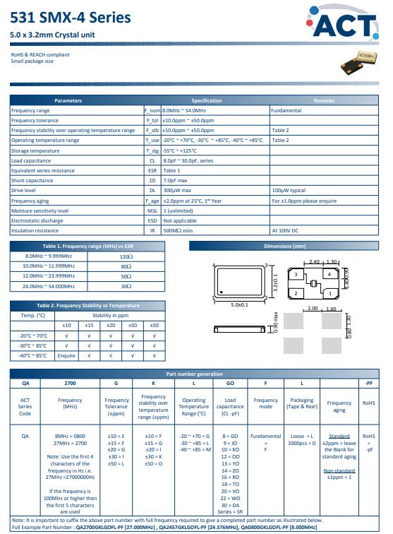 更多>>英國(guó)ACT晶振,531 SMX-4晶振,5032晶體諧振器