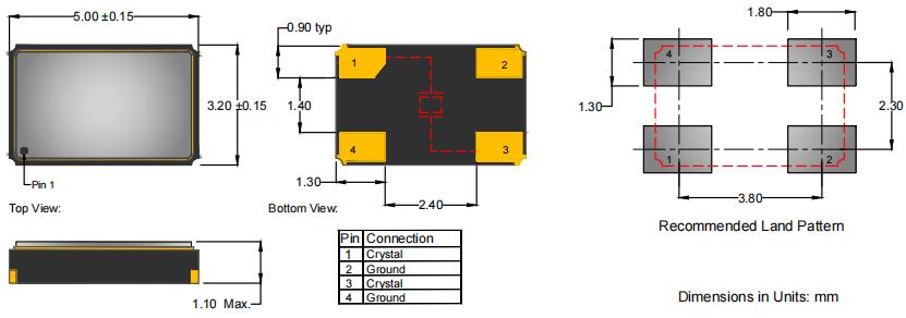 Anderson晶振|AE-132-A-1-2070-2-18-38M4000|6G無線通訊晶振尺寸圖