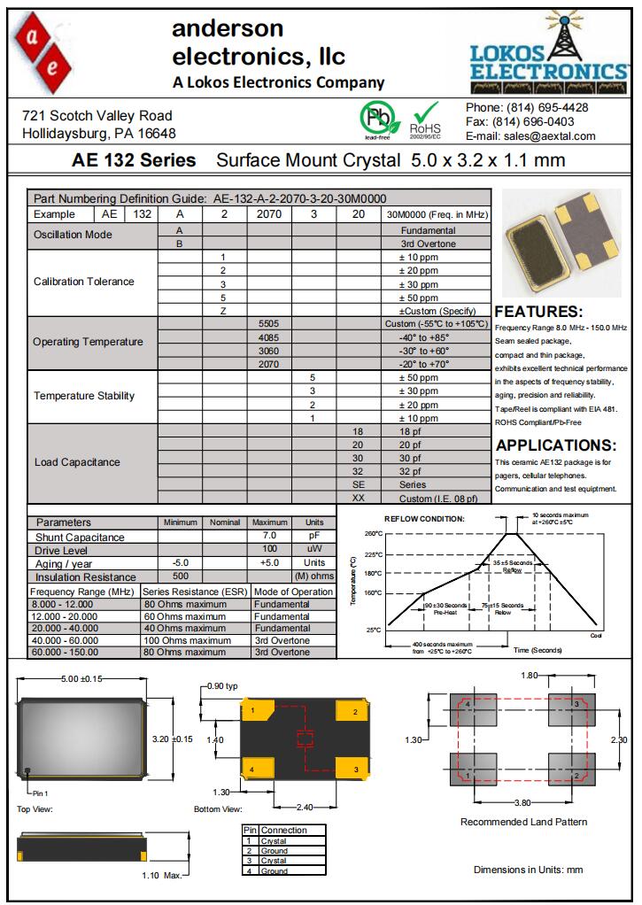 Anderson晶振|AE-132-A-1-2070-2-18-38M4000|6G無線通訊晶振規(guī)格表