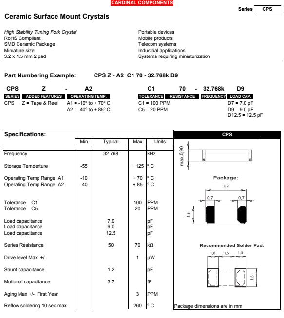 更多>>Cardinal晶振,CPS音叉晶體,GPSZ-A2C570-32.768K-D12.5晶振