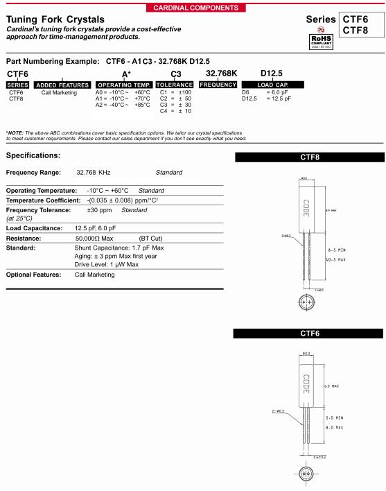 更多>>卡迪納爾晶振,CTF6圓柱晶振,CTF6-A1C3-32.768K-D6晶振