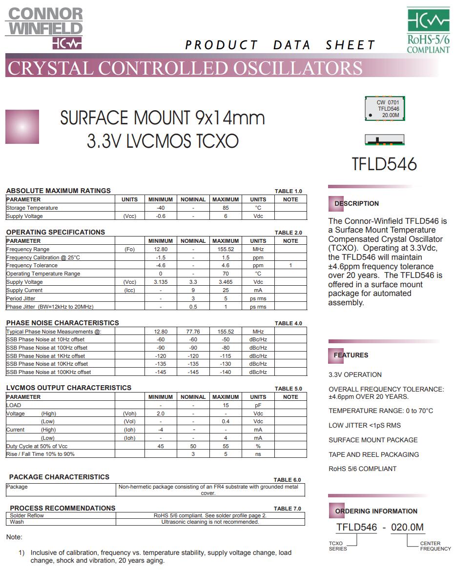 更多>>康納溫菲爾德晶振,TX101晶振,TCXO晶振