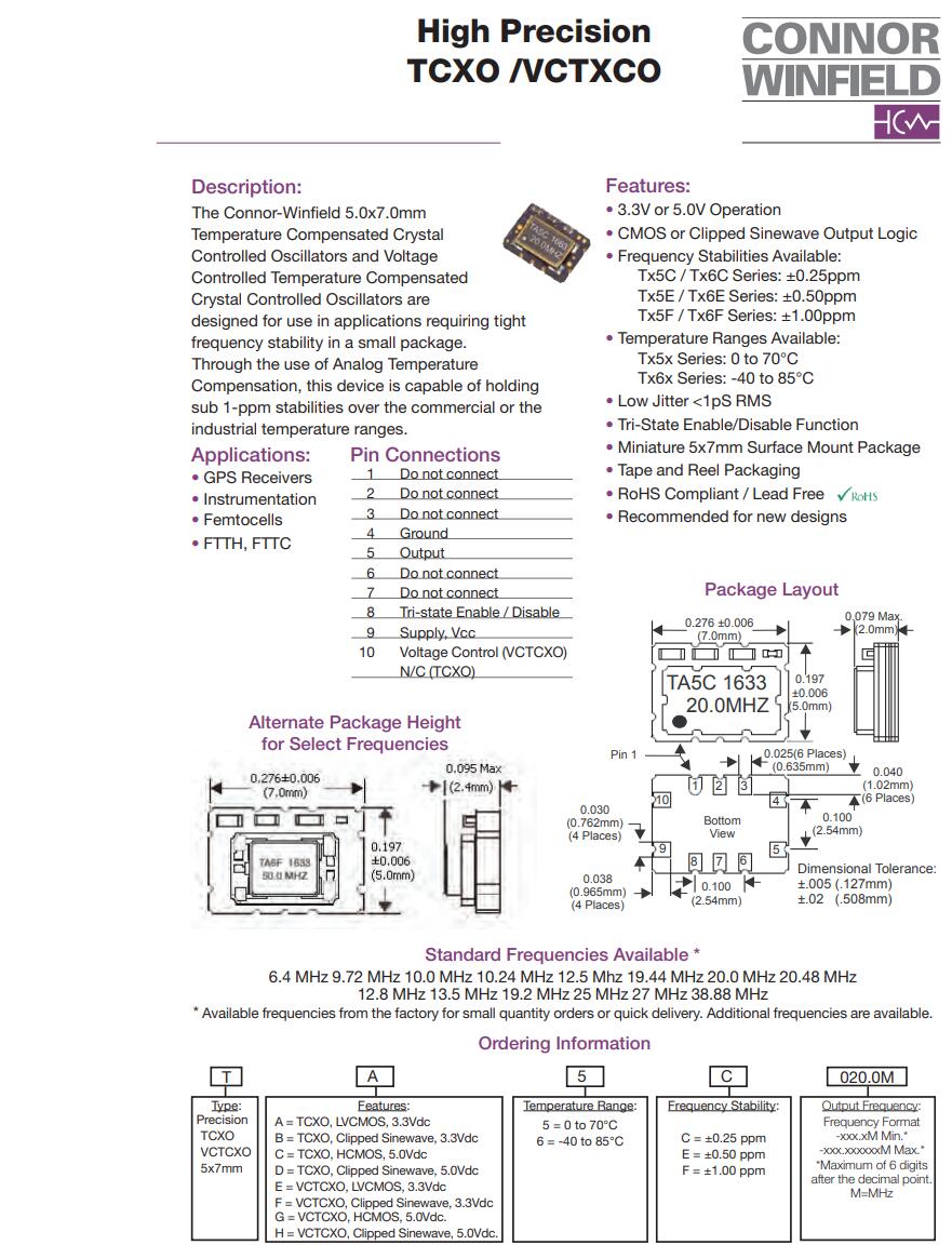 Connorwinfield康納·溫菲爾德晶振集團(tuán)環(huán)?;纠砟睿?strong>康納溫菲爾德晶振,TX180晶振,7050溫補(bǔ)晶振