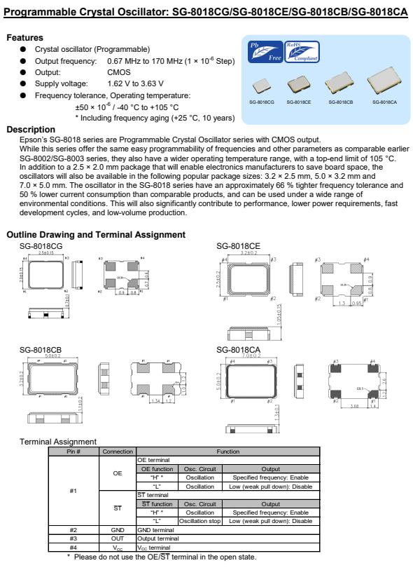 | X1G005601031800 | SG-8018CG | 80.000000 MHz | 2.50 x 2.00 x 0.80 mm | CMOS | 1.620 to 3.630 V | -40 to 105 °C | +/-50 ppm | ≤ 5.9 mA |