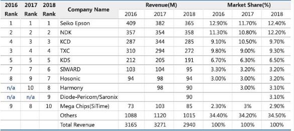 巨頭NDK公司有源業(yè)務(wù)在18及19財(cái)年連續(xù)下滑,KDS業(yè)務(wù)收入也進(jìn)入負(fù)增長階段.部分小廠商關(guān)閉生產(chǎn)線進(jìn)行整合,實(shí)力較強(qiáng)的龍頭企業(yè)則專注高附加值產(chǎn)品,市場集中度進(jìn)一步提升.例如,以京瓷為代表的部分日系晶振廠甚至剝離2520、2016尺寸溫補(bǔ)晶振產(chǎn)線,轉(zhuǎn)而主攻毛利率更高的1612尺寸產(chǎn)品.
