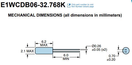 | E1WCDB06-32.768K | Fundamental | Watch Crystal 2.0mm x 6.0mm | ±20ppm | -20°C to +70°C | ±3ppm |