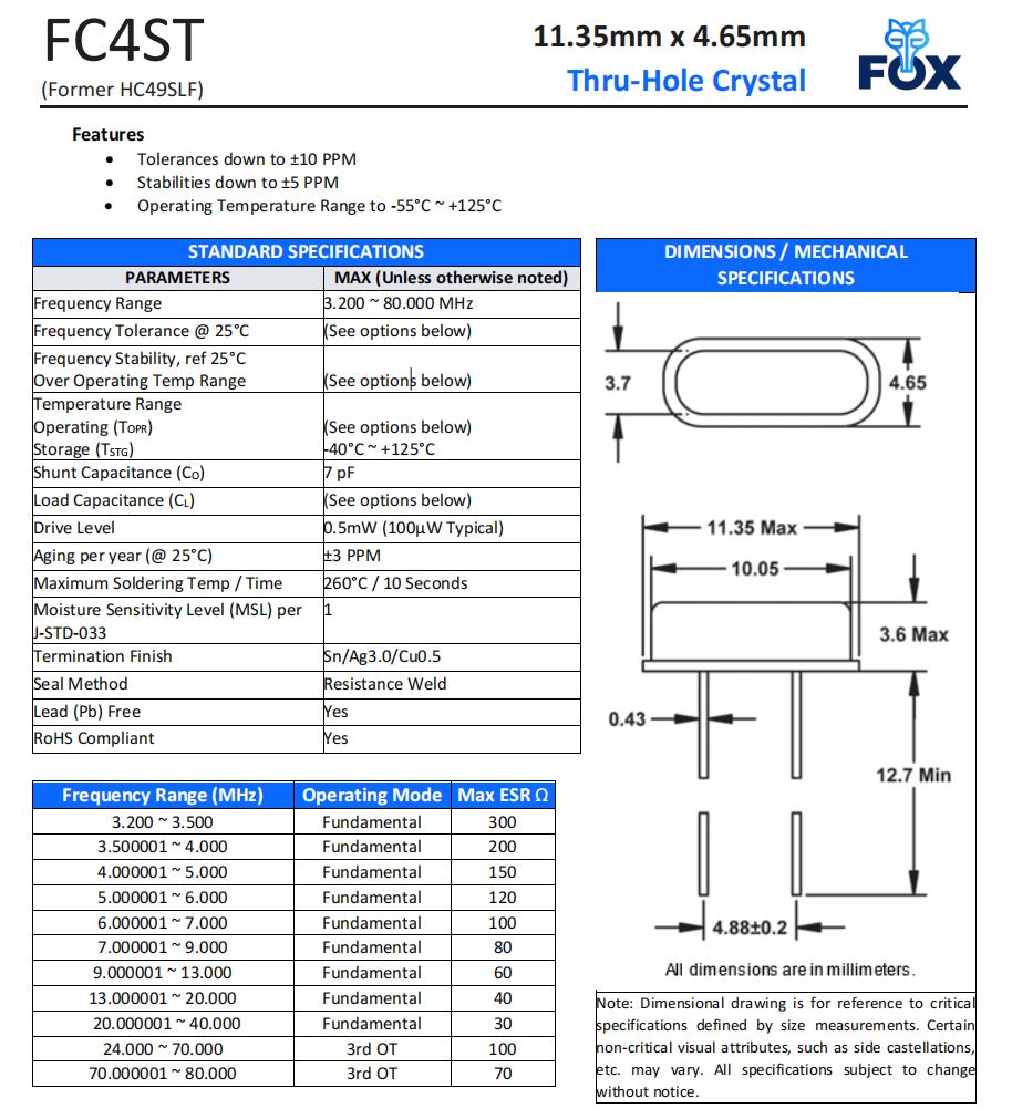 FOX晶振|FC4STCBMF24.576插件晶振|6G模塊晶振規(guī)格表