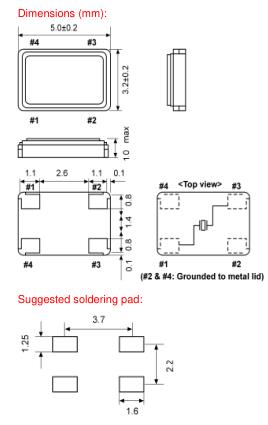 standard ± 30 ppm available ± 10 ~ ± 50 ppm |