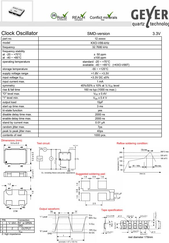 更多>>GEYER格耶晶振,KXO-V99-kHz有源振蕩器,四腳貼片晶振