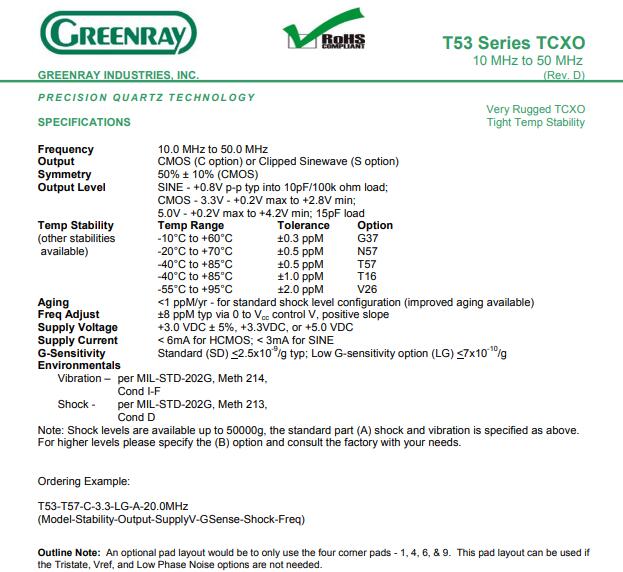 更多>>GREENRAY晶振,T53系列晶振,5032溫補晶振