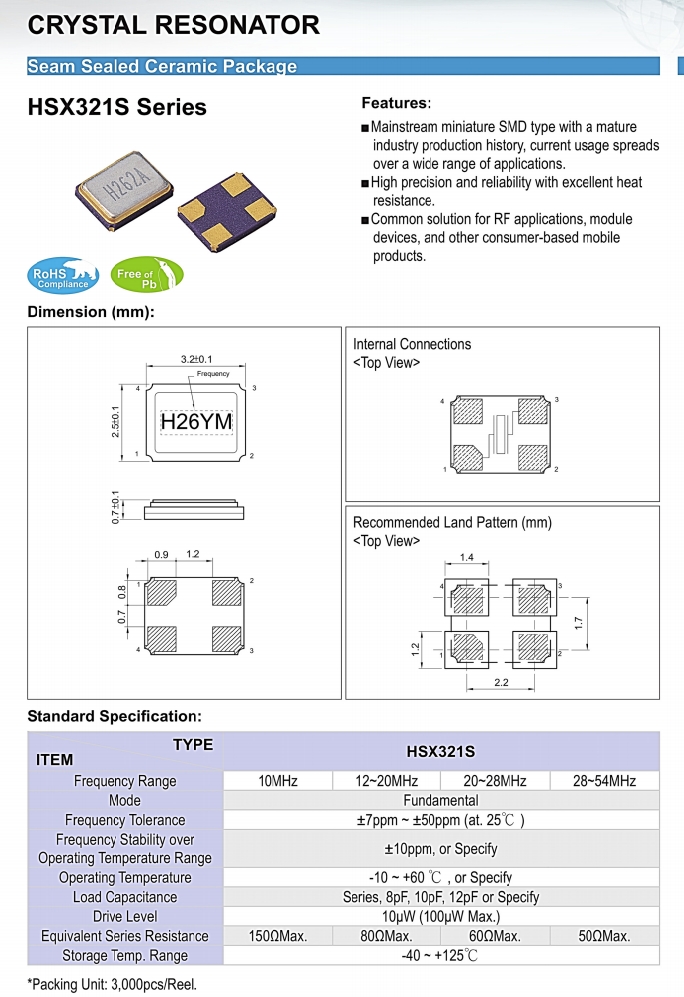 | X3S017000BK1H-U | HELE晶振 | HSX321S | 17.000MHZ | 20PF | ±10PPM | ±10PPM |