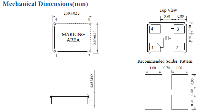 | E2SB25.0000F10E12 | Hosonic晶振 | E2SB | 25MHz | 10pF | ±10ppm | ±10ppm | 2.5 x 2 x 0.56 mm |