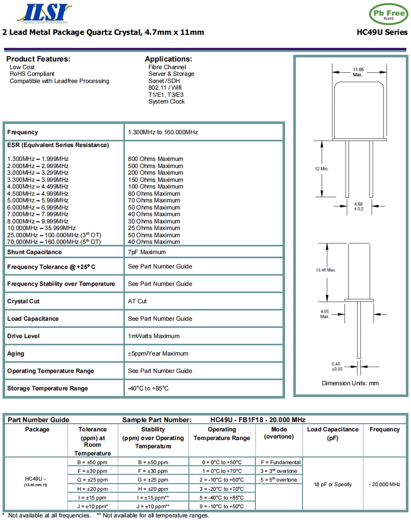 | ILCX07A-FB1F12- 18.432 MHz | ILSI | ILCX07A | 0°C ~ 70°C | 18.432 MHz | ±30ppm | 12 pF |