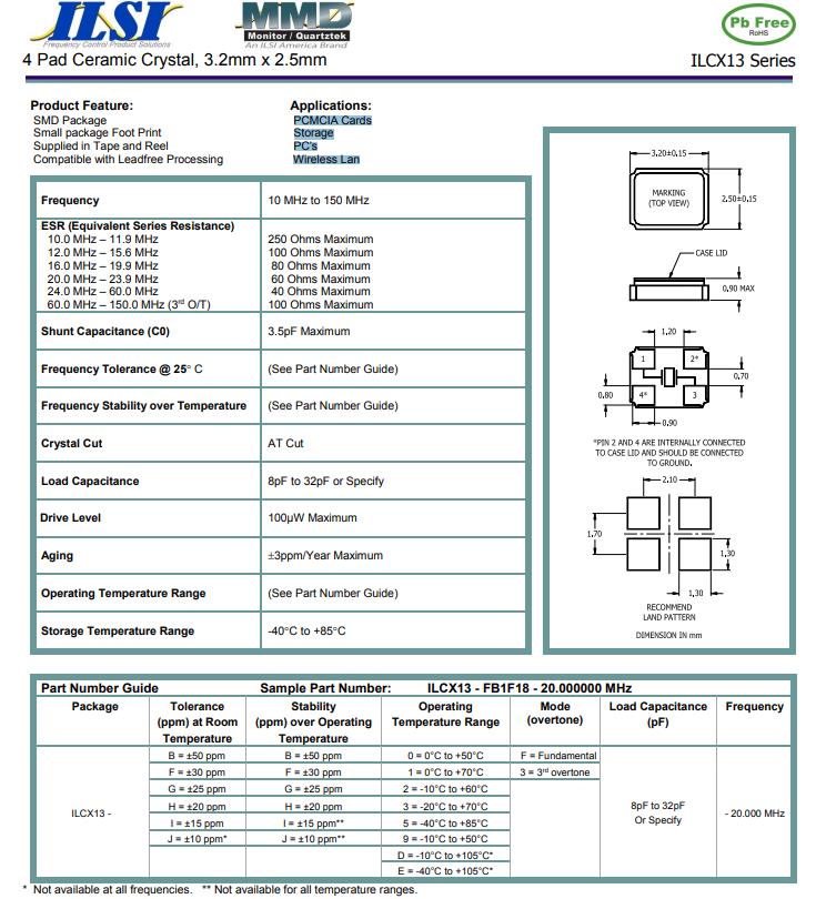 | ILCX07-FB3F13-16.000MHz | ILSI | ILCX07 | -20°C ~ 70°C | 16 MHz | ±30ppm | 13 pF |