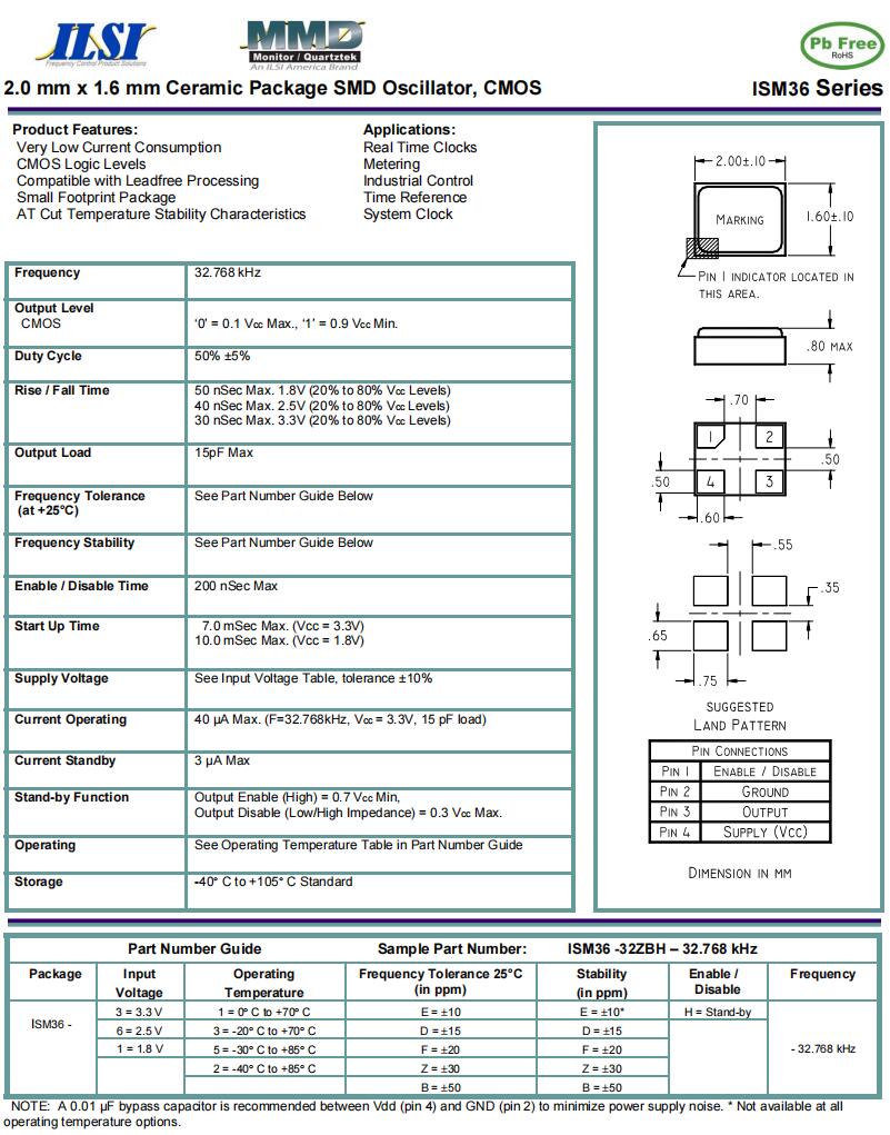 | IL3X2-HX5F6- 32.768 KHz | ILSI | IL3X2 | -40°C ~ 85°C | 32.768 kHz | ±20ppm | 6 pF |