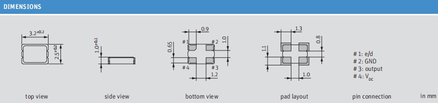 -高穩(wěn)定性振蕩器與停止功能•3.2 x 2.5 mm