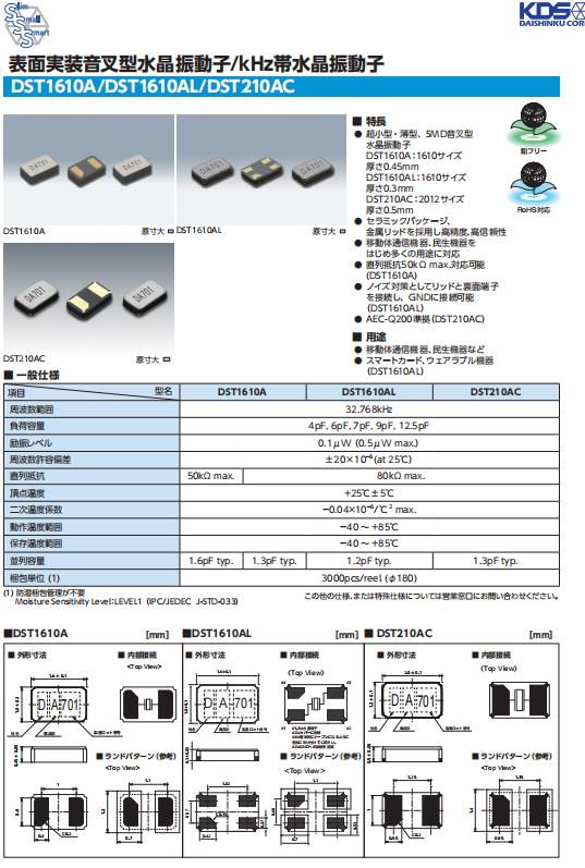 | KDS晶振 | 1TJL070DR1A0009 | DST1610AL | 1610 | 32.768KHZ | 7PF | 20ppm |