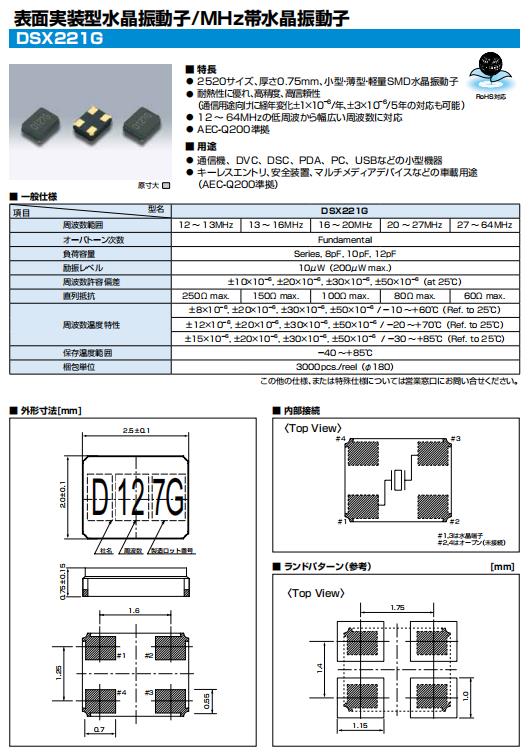 | KDS晶振 | 1ZCA12000BA0A | DSX221G | 2520 | 12.000MHZ | ||