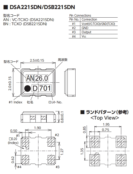 大真空TCXO晶振|DSB221SDN低抖動晶振|1XXB16367MAA尺寸圖