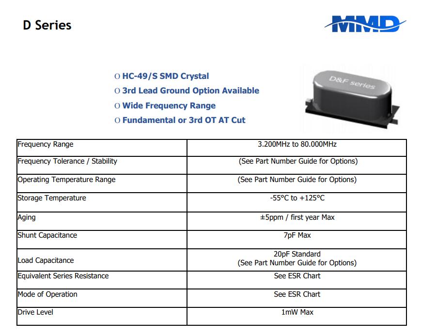 MMDCOMP晶振,DF18AA1-24.000MHZ-T,6G低成本晶振規(guī)格表