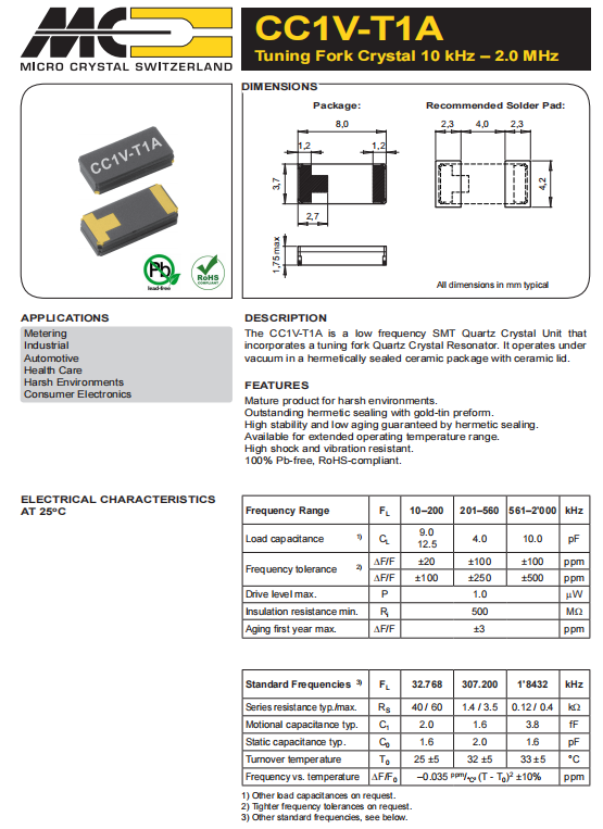 | CC1V-T1A-307.20kHz-4pF-100PPM-TC-QC | Micro 晶振 | 晶體 307.200 kHz 4.0 pF 100 PPM -55/+125C | Crystals |