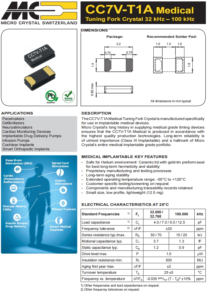 | CC7V-T1A-32.768kHz-12.5pF-100PPM-TA-QC | Micro Crystal | 晶體 32.768 kHz 12.5 pF +/-100 PPM -40/+85C |
