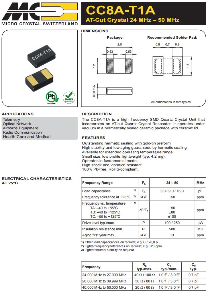 | CC1V-T1A-2.000MHz-10pF-100PPM-TA-QC | Micro Crystal | 晶體 2.000 MHz 10.0 pF +/-100 PPM -40/+85C |