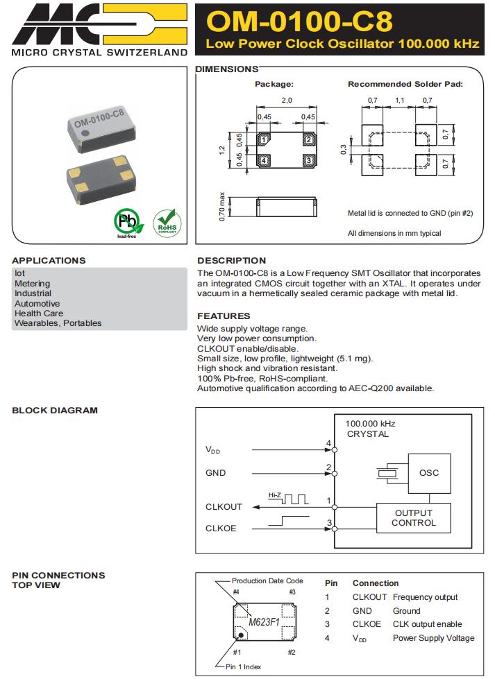 | OV-0100-C7-100.000kHz-50PPM-TA-QC | Micro Crystal | 標(biāo)準(zhǔn)時鐘振蕩器 100.0 kHz +/-50 PPM -40/+85C |