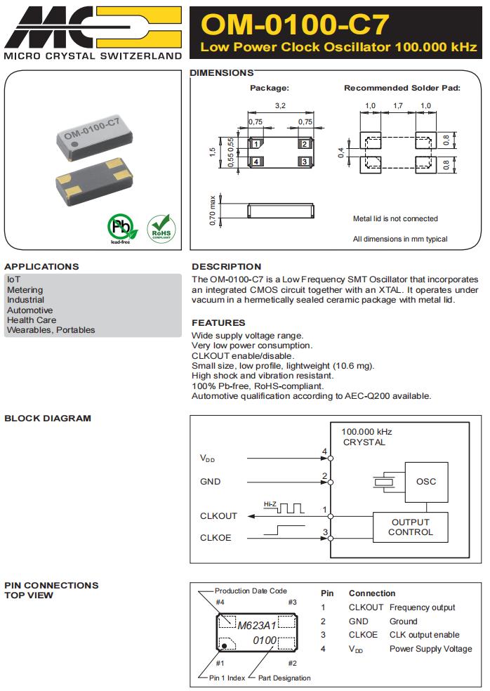 | CC4V-T1A-32.768kHz-12.5pF-20PPM-TC-QC | Micro 晶振 | 晶體 32.768 kHz 12.5 pF +/-20 PPM -55/+125C | Crystals |