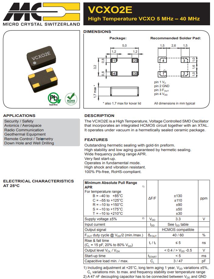 VCX02EV-C-48.000MHz-T3|高溫壓控振蕩器|6G模塊晶振,Micro進(jìn)口晶振,VCX02E有源晶振,VCX02EV-C-48.000MHz-T3晶振,5032mm晶振,高溫壓控振蕩器,頻率48MHz,電壓3.3V,頻率穩(wěn)定性110ppm,工作溫度-55~125°C,高穩(wěn)定性晶振,高抗沖擊晶振,6G模塊晶振,地?zé)嵩O(shè)備晶振,遠(yuǎn)程遙控晶振,井下和鉆井應(yīng)用晶振.