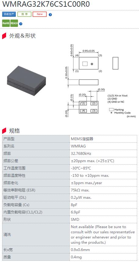 更多>>進口村田晶振,WMRAG系列晶振,WMRAG32K76CS1C00R0晶振