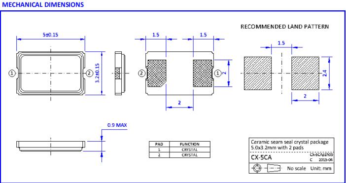 | Stability over operating temp. | TC | ±30ppm | Depending on operating temperature range, other options available |