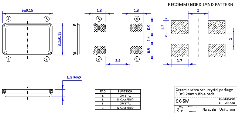香港NKG晶體|S5M12.288F10M23-EXT|6G無線局域網(wǎng)晶振尺寸圖