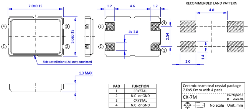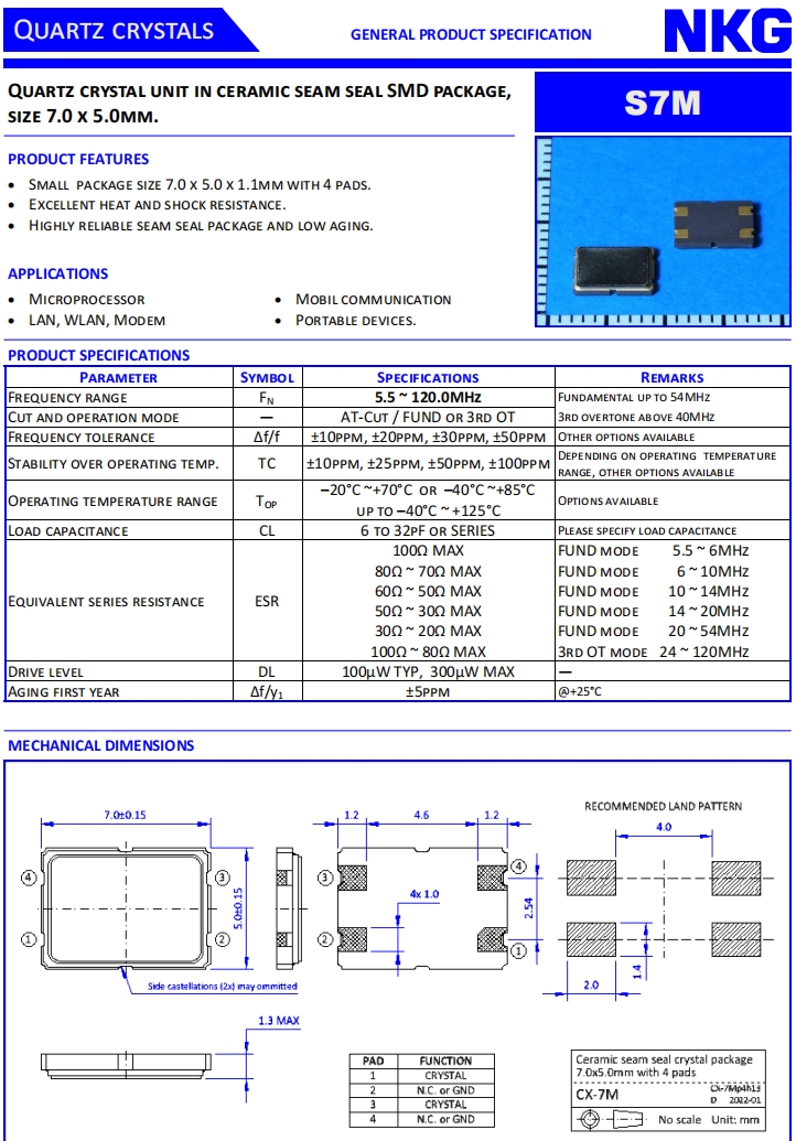 NKG進口晶振|S7M26.000F16E1Y-EXT|7050抗震晶振規(guī)格表