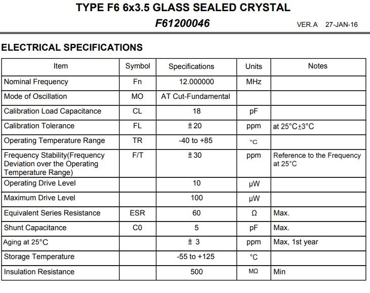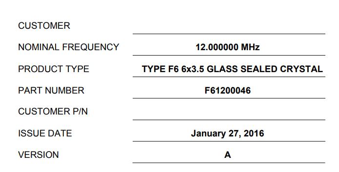 | 型號 | F61200046晶振 |