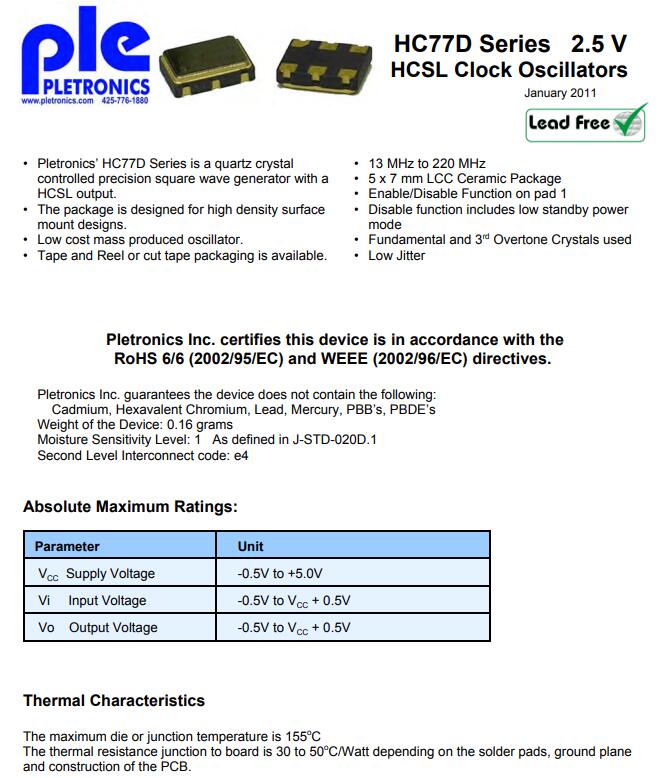 Pletronics晶振公司關(guān)注用戶需求,不斷研發(fā)新品,改善現(xiàn)有產(chǎn)品.能夠滿足不同客戶對(duì)于石英晶振, 貼片晶振,溫補(bǔ)晶體振蕩器等頻率控制元件的需求提供一個(gè)完整的解決方案.普銳特晶振,HC77D晶振,7050有源晶振