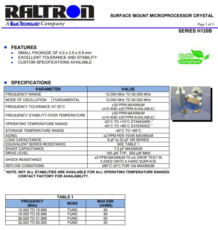 Raltron石英晶振集團(tuán)加強(qiáng)環(huán)境意識(shí)教育,提高全員環(huán)境意識(shí),充分調(diào)動(dòng)職工的積極性,積極使用壓電石英晶體元器件、壓電石英晶體、有源晶體、(SPXO)普通晶體振蕩器,(TCXO)溫補(bǔ)晶體振蕩器,(OCXO)恒溫晶體振蕩器等環(huán)保型原材料,減少生產(chǎn)過(guò)程中的廢棄物產(chǎn)生量,努力向相關(guān)方施加環(huán)境影響. 進(jìn)口拉隆晶振,H120B晶振,4025四腳晶振