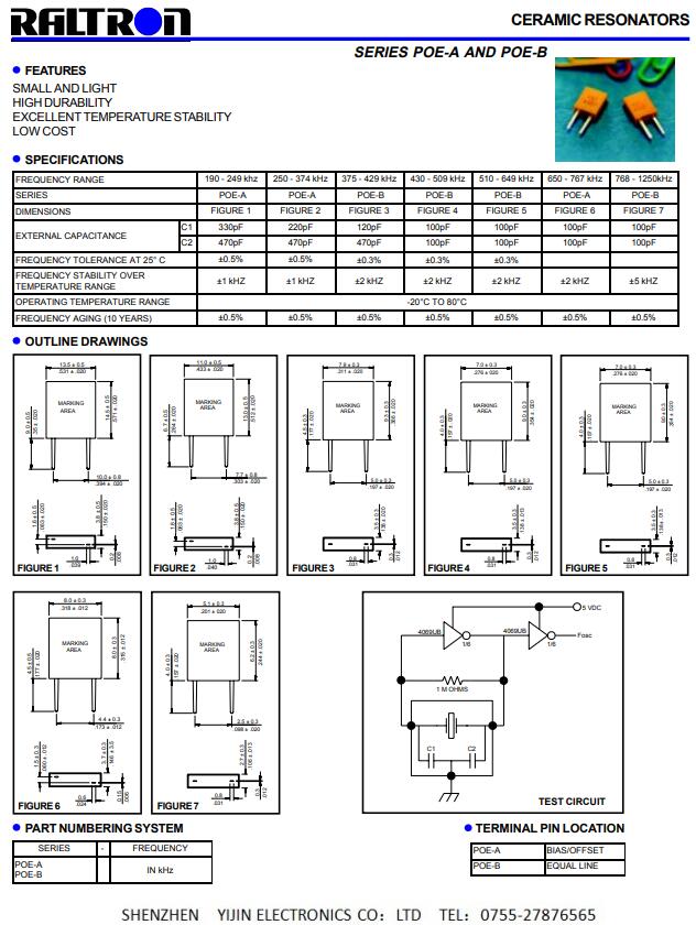 Raltron晶振,POE-A,POE-B晶振,高頻聲表面濾波器