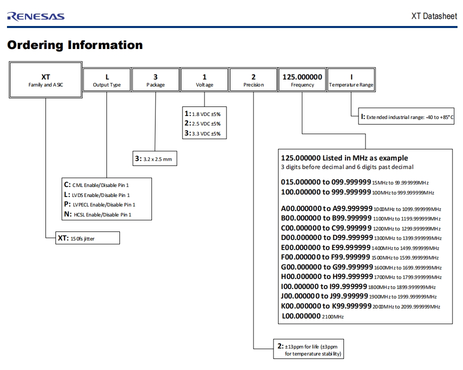 | XTL332125.000000I | Renesas Electronics America Inc | XT | 125 MHz | LVDS | 3.3V | ±3ppm |