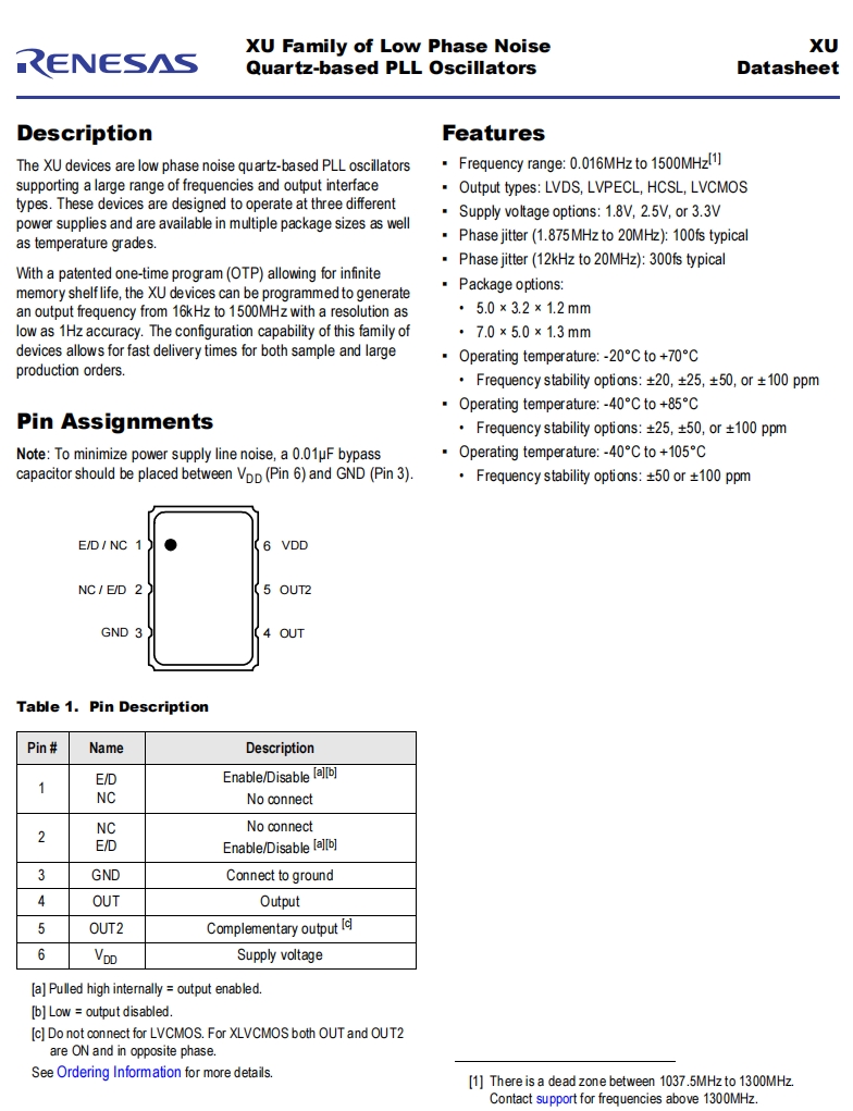 | XUM520125.000000X | Renesas Electronics America Inc | XU | 125 MHz | LVDS | 2.5V |
