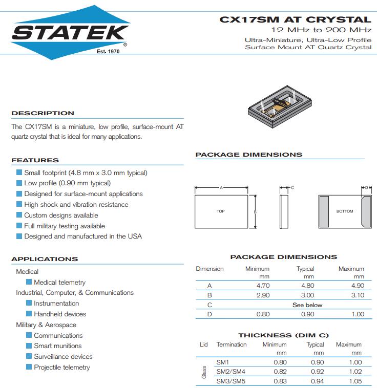 更多>>美國(guó)STATEK晶振,CX17SM晶振,二腳晶體諧振器