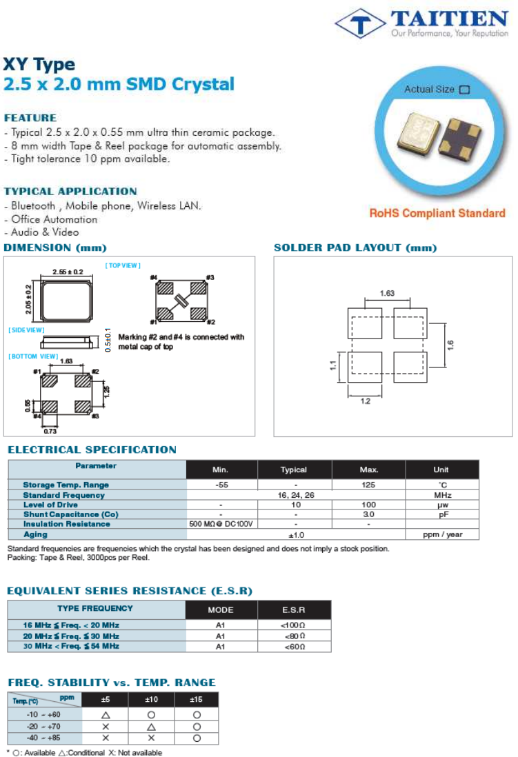 | XYAEECNANF-26.000000 | Taitien | XY | 26MHz | ±30ppm | ±30ppm | 8pF |