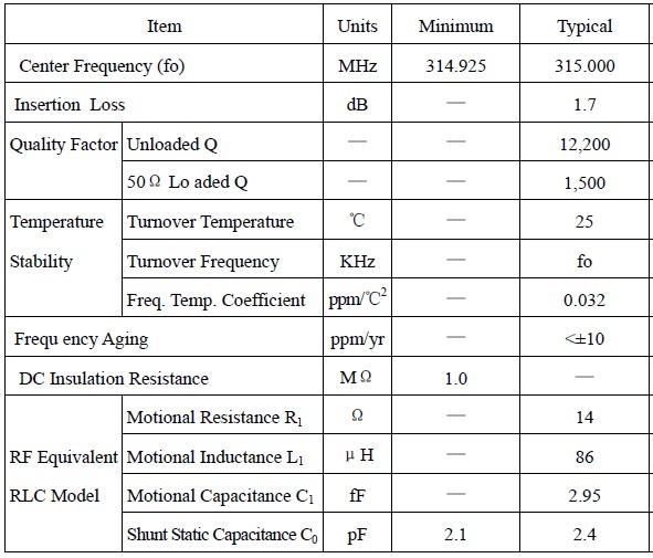 陶瓷濾波器R315規(guī)格