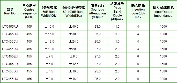 LTP455B陶瓷濾波器規(guī)格