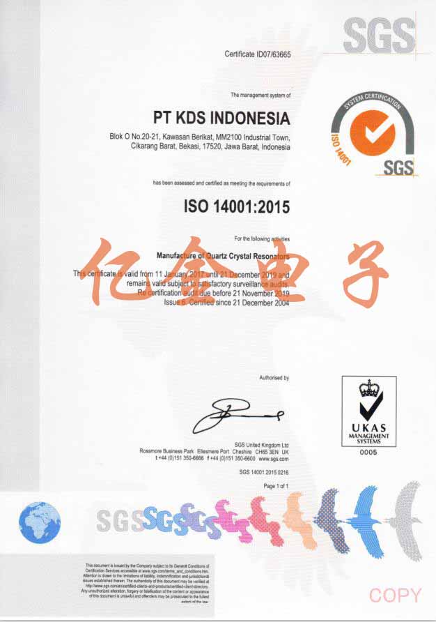 KDS晶振ISO14001環(huán)保認證