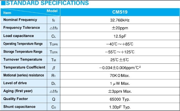西鐵城晶振CM519|超小型、薄型、質(zhì)地輕的表面貼片音叉型晶體諧振器、具備優(yōu)良的耐熱性、耐環(huán)境特性、在辦公自動(dòng)化金屬外殼的使用使得產(chǎn)品在封裝時(shí)能發(fā)揮比陶瓷外殼更好的耐沖擊性。