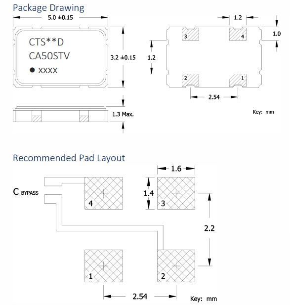 更多>>CA50C2502HNT,CTS西迪斯有源晶振,5032寬溫晶振