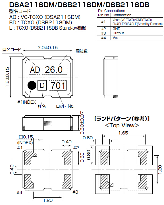 DSA211SDM進口振蕩器,壓控溫補振蕩器,石英晶振,KDS晶振代理商,"1XXC52000JBA",2016mm體積的溫補晶振(TCXO),是目前有源晶振中體積最小的一款,產(chǎn)品本身帶溫度補償作用的晶體振蕩器,該體積產(chǎn)品最適合于GPS,以及衛(wèi)星通訊系統(tǒng),智能電話等多用途的高穩(wěn)定的頻率溫度特性晶振.為對應低電源電壓的產(chǎn)品.(DC+1.8V ± 0.1V to +2.9V ± 0.1V 對應IC可能) 高度:最高0.8 mm,體積:0.0022 cm3,重量:0.008 g,超小型,輕型.低消耗電流,表面貼片型產(chǎn)品.(可對應回流焊)無鉛產(chǎn)品.滿足無鉛焊接的高溫回流溫度曲線要求,帶有AFC(頻率控制)功能,Enable/Disable功能,產(chǎn)品本身可根據(jù)使用需要進行選擇.