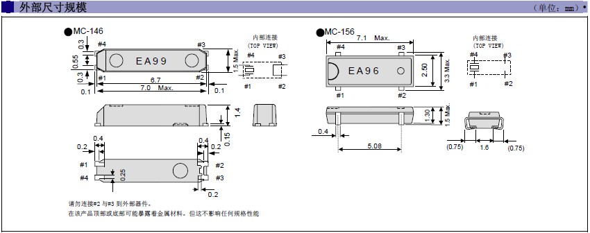 MC-156愛普生晶振,"MC-156 32.7680KA-A0:ROHS",原裝進口晶振,小型表貼式晶體,愛普生晶振產品本身外觀是多種化,體積有大有小,有二個腳SMD焊接模式,也有三個腳SMD焊接模式,一樣有四個腳焊接模式,還有時鐘模塊焊接模式,產品具有無源32.768KHZ,也有帶電壓模式的32.768KHZ晶體系列.應用范圍非常廣闊,比如多種電子消費類,手機應用,藍牙多功能播放器,無線通訊產品,平板電腦等多個領域,因晶體本身外觀款式多元化,所以適合多個產品應用.并且滿足歐盟ROHS環(huán)保要求,晶體本身有重量輕,體積小,超薄型等多種優(yōu)勢,得到市場認可.