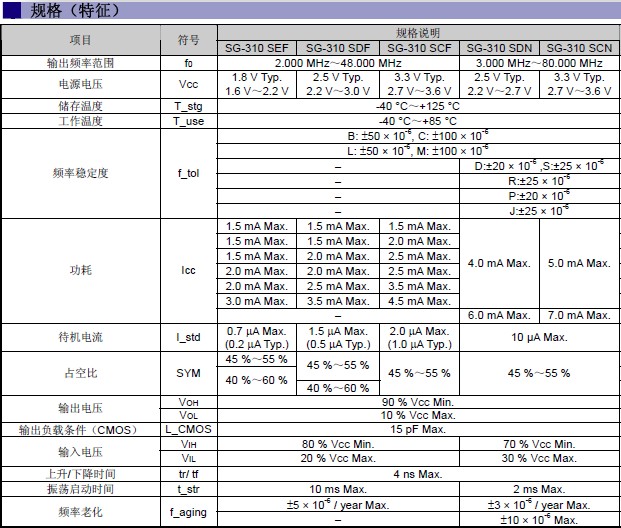 石英振蕩器SG-310規(guī)格